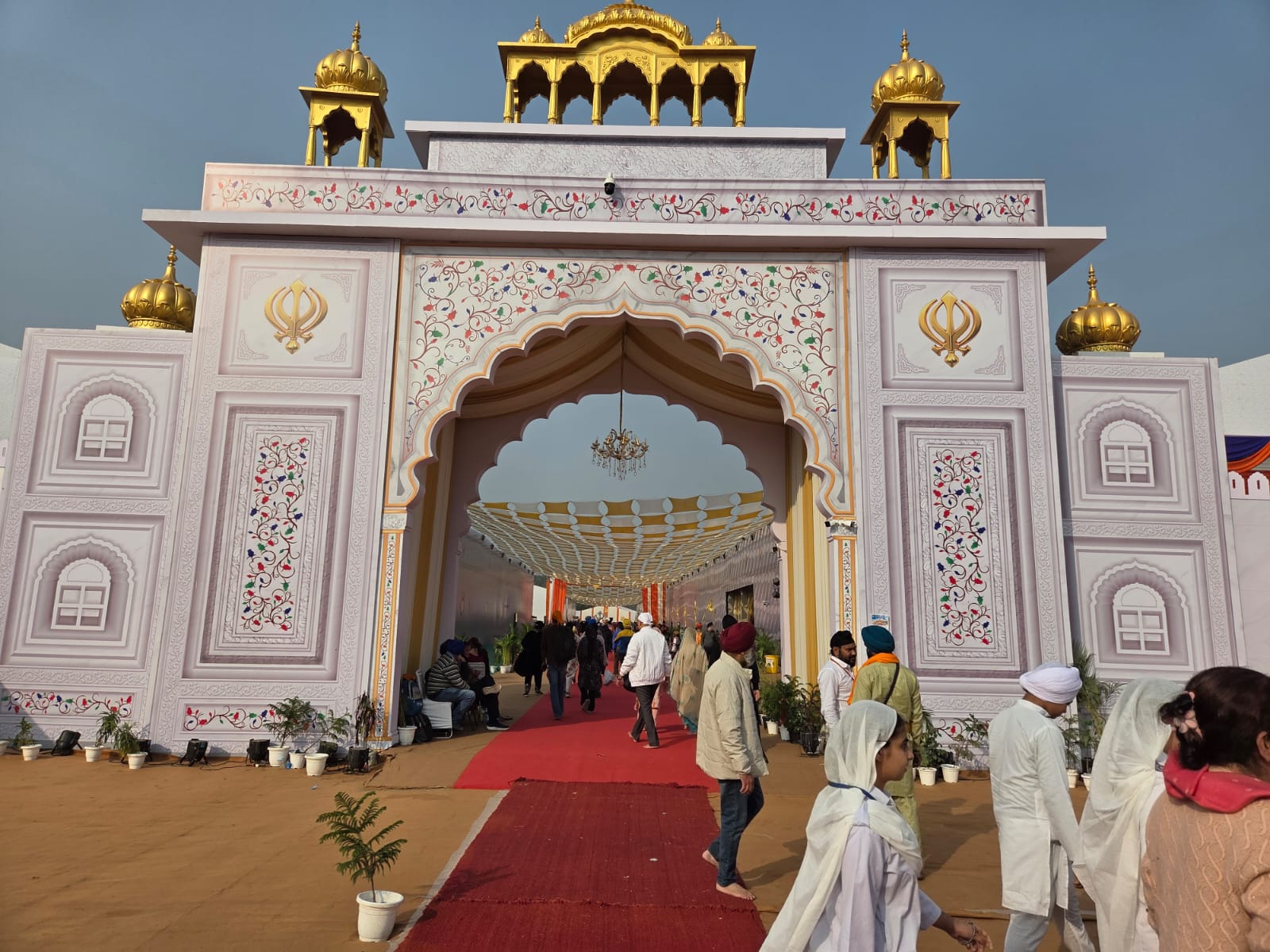 The day began with the tradition that has become the very soul of this congregation: the sacred procession carrying Guru Sahib’s Pavan Swarup in a palanquin from the historic Gurdwara Sri Shishganj Sahib to the Red Fort pandal. Thousands of devotees joined this procession amid prayers and hymns. The Pavan Swarup will be ceremoniously taken back to the Gurdwara at night.