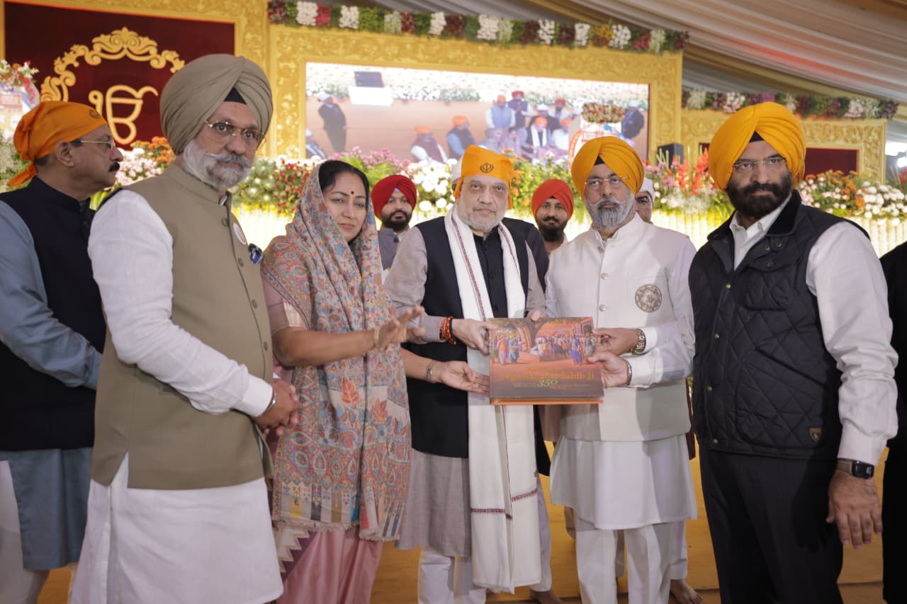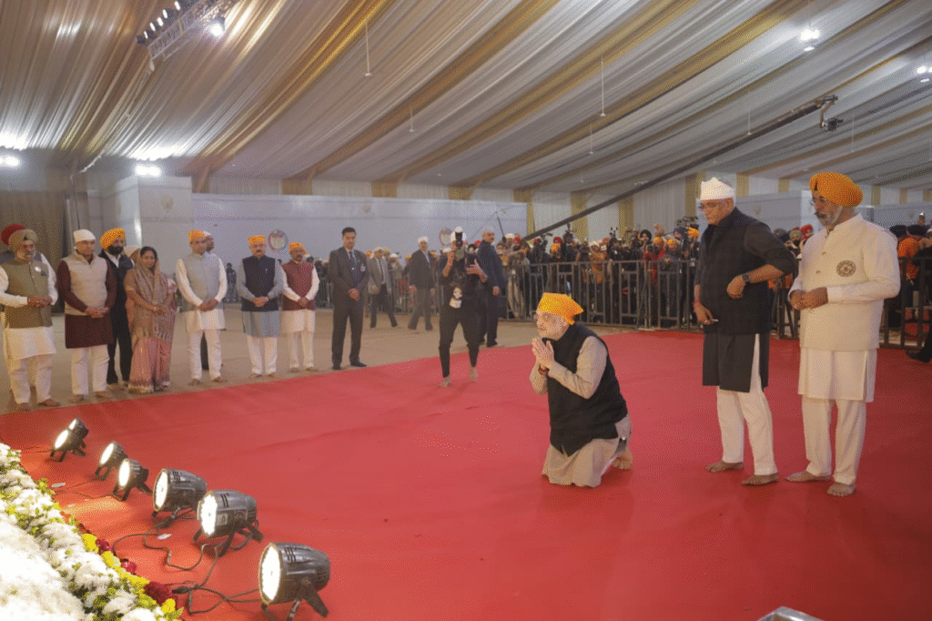 New Delhi, 24 November 2025 : Union Home Minister Amit Shah visited the grand three-day congregation being held at Delhi’s historic Red Fort grounds to mark the 350th Martyrdom Anniversary of Sri Guru Tegh Bahadur Sahib. He offered his respects and paid homage to Guru Sahib.