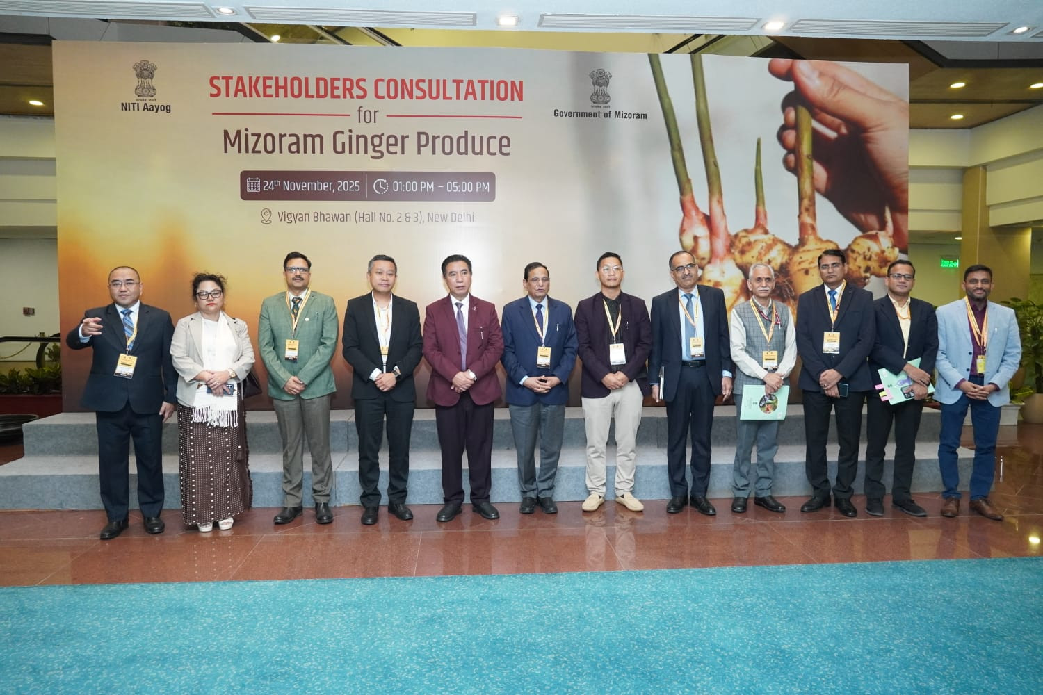 New Delhi, Nov 2025: The Government of Mizoram, in collaboration with NITI Aayog, Government of India, today organised a high-level stakeholder consultation titled “Stakeholders Consultation for Mizoram Ginger Produce” at Vigyan Bhawan, New Delhi. The programme was attended by Chief Minister Pu Lalduhoma.