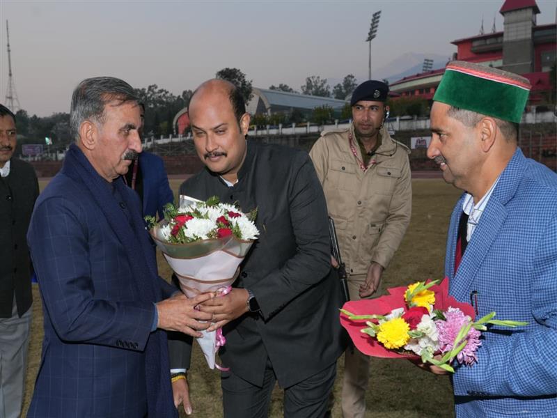 Chief Minister Thakur Sukhvinder Singh Sukhu was accorded a warm welcome upon his arrival at Dharamshala in Kangra district today by Ayush Minister Yadvinder Goma, Deputy Chief Whip Kewal Singh Pathania, former MLA Surender Kaku, HRTC Vice Chairman Ajay Verma, HPBOSE Chairman Dr. Rajesh Sharma, APMC Kangra Chairman Nishu Mongra, Congress leader Devender Jaggi, Deputy Commissioner Hemraj Bairwa, Superintendent of Police Mayank Choudhary, Congress leaders and other people.