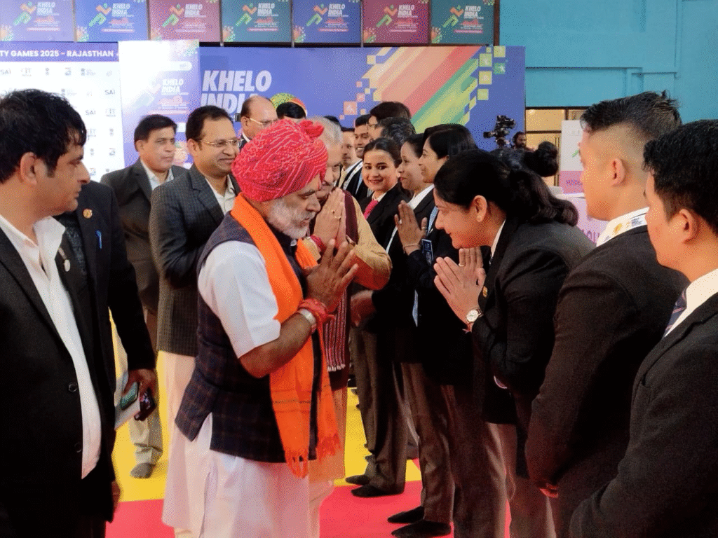 Jaipur, Nov 2025 — Under the Khelo India University Games, various competitions officially commenced on Tuesday at Lakecity, Udaipur. This year, Lakecity is hosting exciting events including judo, kayaking, and beach volleyball. The inaugural ceremony took place at Atal Bihari Vajpayee Indoor Stadium, attended by dignitaries, sports officials, coaches, and athletes from different universities.