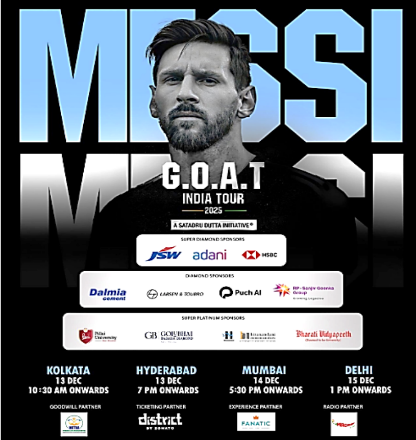 With Hyderabad now on board, the GOAT India Tour achieves a true pan-India presence, spanning the India Tour achieves a true pan India presence, spanning the East (Kolkata) and South (Hyderabad) on December 13, West (Mumbai) on December 14 and in the end, North (Delhi) on December 15.