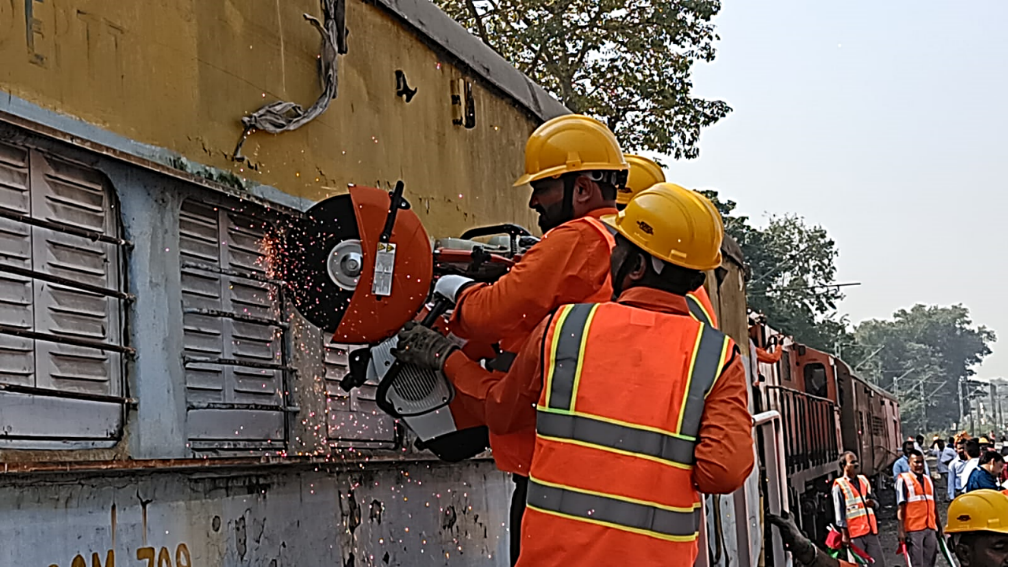 Such joint drills with NDRF are crucial for assessing the preparedness of Railway breakdown staff, enhancing their rescue skills, and training them in the use of modern equipment and techniques. These exercises also ensure that trapped passengers are rescued, provided first aid, and shifted to hospitals within the “Golden Hour”—i.e., within one hour of the accident. The mock drill not only improved the rescue efficiency of Railway personnel but also helped NDRF teams gain better understanding of Indian Railway coach structures.