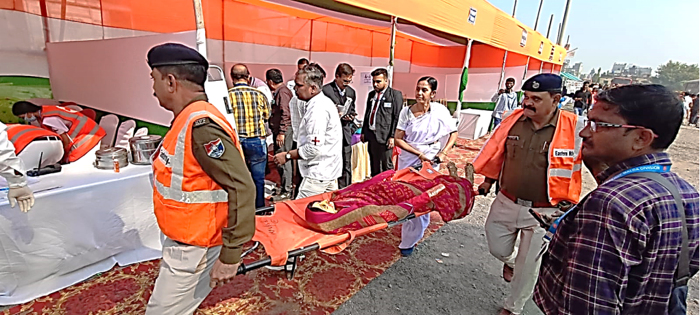 ADRM/Malda, Mr. Sheo Kumar Prasad was present at the mock accident site along with other Branch Officers, Scouts and Guides team, and the NDRF team. The Accident Relief Train (ART)/Sahibganj arrived at the accident site immediately.