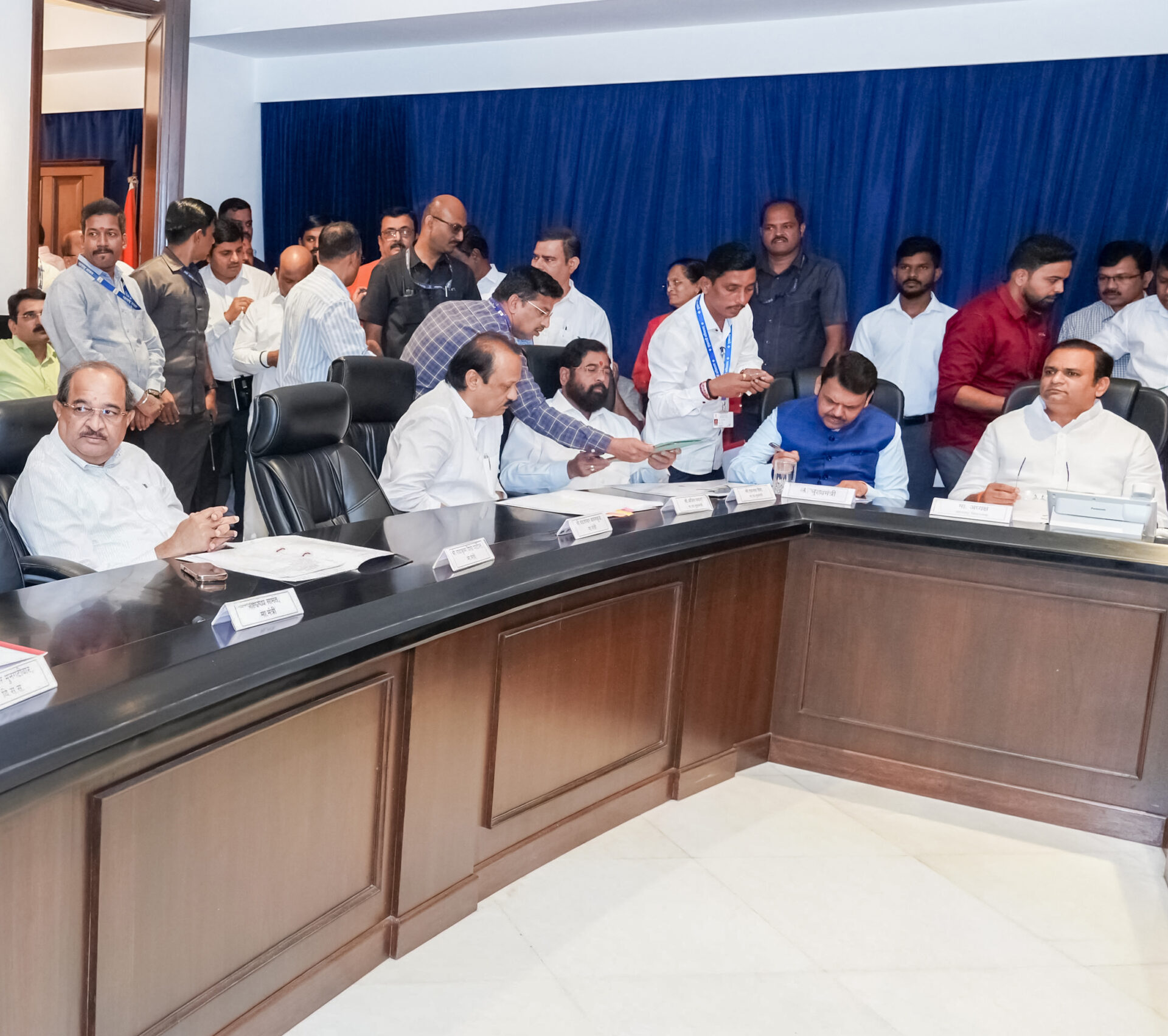 A meeting of the Legislature Business Advisory Committee was held at the Vidhan Bhavan. The meeting was attended by Legislative Council Chairman Prof. Ram Shinde, Assembly Speaker Adv. Rahul Narwekar, Chief Minister Devendra Fadnavis, Deputy Chief Minister Eknath Shinde, Deputy Chief Minister Ajit Pawar, Legislative Council Deputy Chairperson Dr. Neelam Gorhe, Assembly Deputy Speaker Anna Bansode, Higher and Technical Education & Parliamentary Affairs Minister Chandrakant (Dada) Patil, Revenue Minister Chandrashekhar Bawankule, Water Resources Minister Radhakrishna Vikhe-Patil, Cultural Affairs Minister Adv. Ashish Shelar, MLAs Sudhir Mungantiwar, Deepak Kesarkar, Jitendra Awhad, Bhaskar Jadhav, Sunil Prabhu, Amin Patel, and MLCs Anil Parab, Prasad Lad, Praveen Darekar, Vikram Kale, Satej Patil, Legislature Secretary Jitendra Bhole, along with other concerned officials.