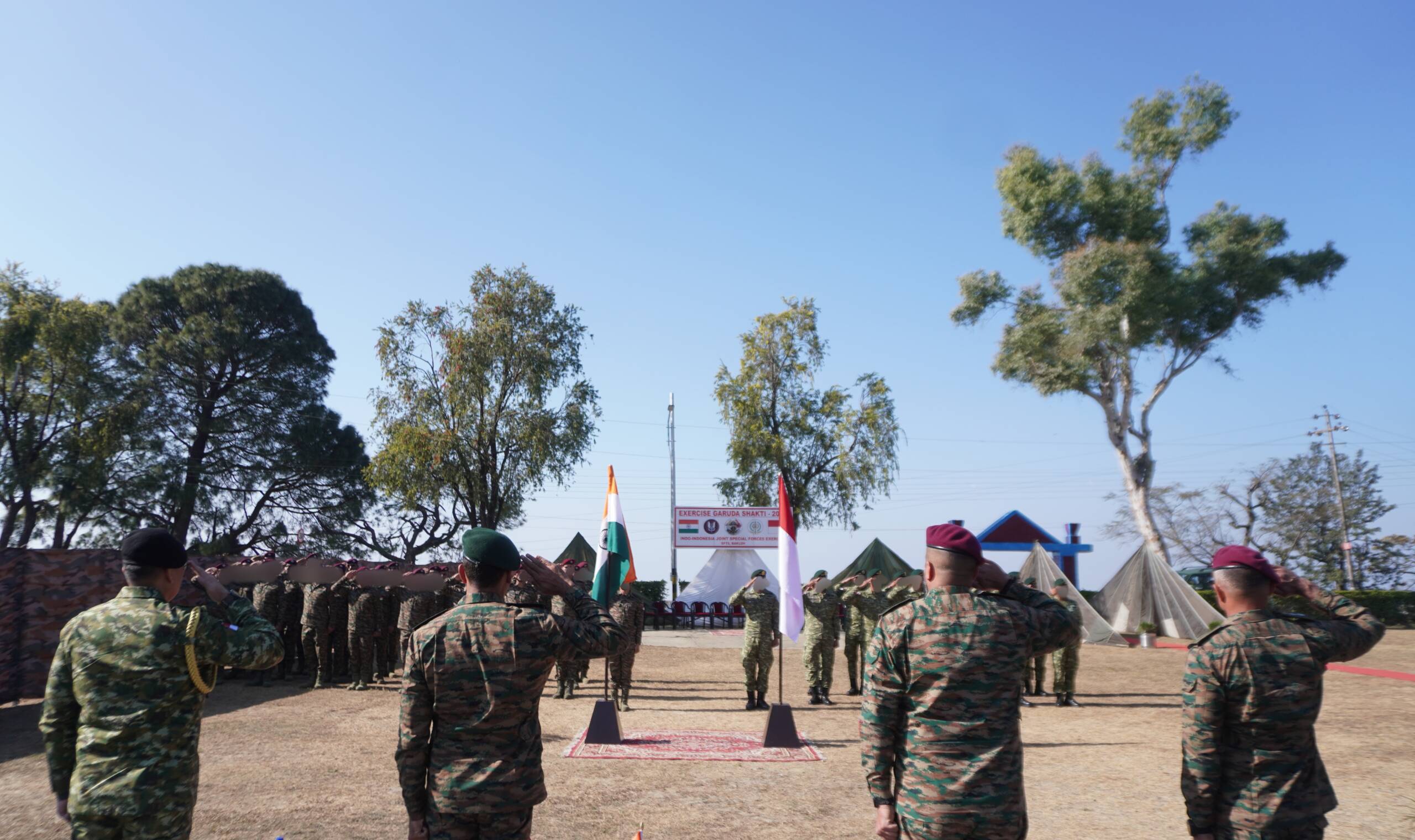 The Indian contingent is represented by troops from THE PARACHUTE REGIMENT (Special Forces), while the Indonesian contingent comprises personnel from the Indonesian Special Forces.