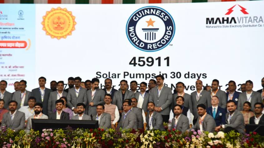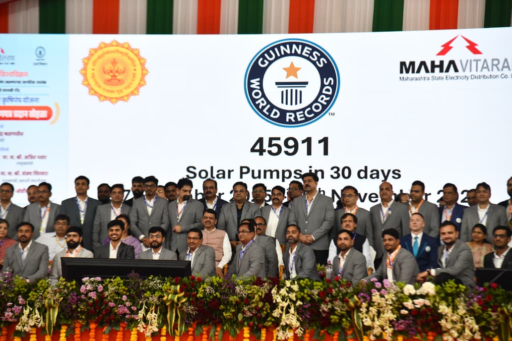 Under the ‘Magel Tyala Solar Krushi Pump’ scheme, Maharashtra has created a world record. Mahavitaran achieved the milestone of installing 45,911 solar agricultural pumps in a single month. This record has been successfully entered into the Guinness Book. The Guinness Book World Record certification ceremony was held today at the Auric City ground in Shendra MIDC, Chhatrapati Sambhajinagar. Chief Minister Devendra Fadnavis was present as the chief guest at this ceremony. Karl Saville from the Guinness Book of World Records was also present to officially announce the world record.