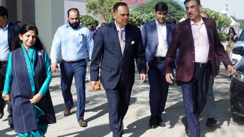 Chief Secretary V. Srinivas and ACS (Industries & Commerce) Shikhar Agrawal inspected the venue at JECC, Sitapura, reviewing preparations for the main ceremony, sectoral sessions, and the ‘Pragati Path’ showcasing state government achievements. The Chief Secretary directed officials to complete all arrangements within 48 hours.