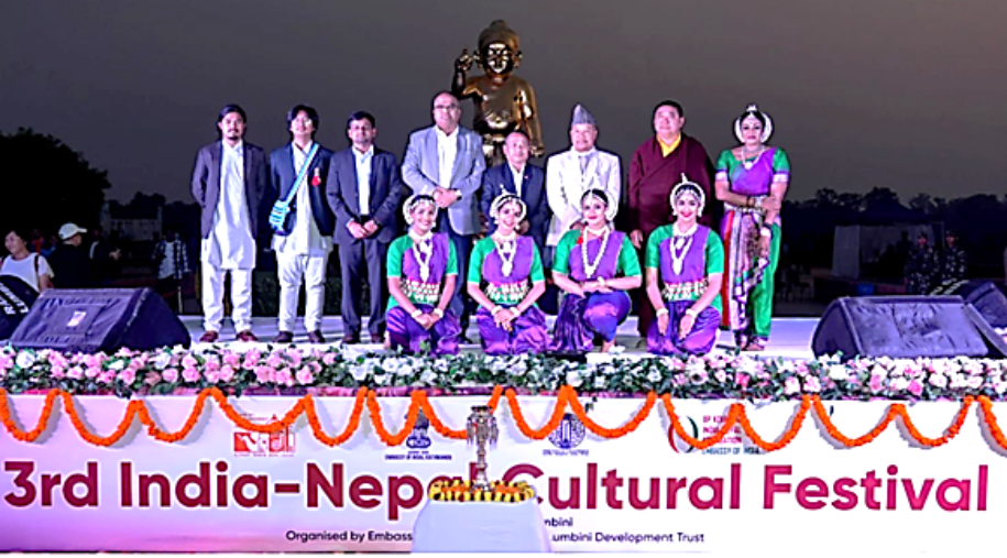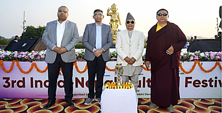 The one-day festival celebrates the rich cultural heritage and traditions of both India and Nepal, with a special focus on Buddhism. The event was jointly inaugurated by Krishna Bahadur Gharti Magar, Governor of Lumbini Province; Senior Indian Official Munu Mahawar, Dr. Lharkyal Lama, Vice Chairman of Lumbini Development Trust, and Dr. Rakesh Pandey, Deputy Chief of Mission at the Embassy of India in Kathmandu.