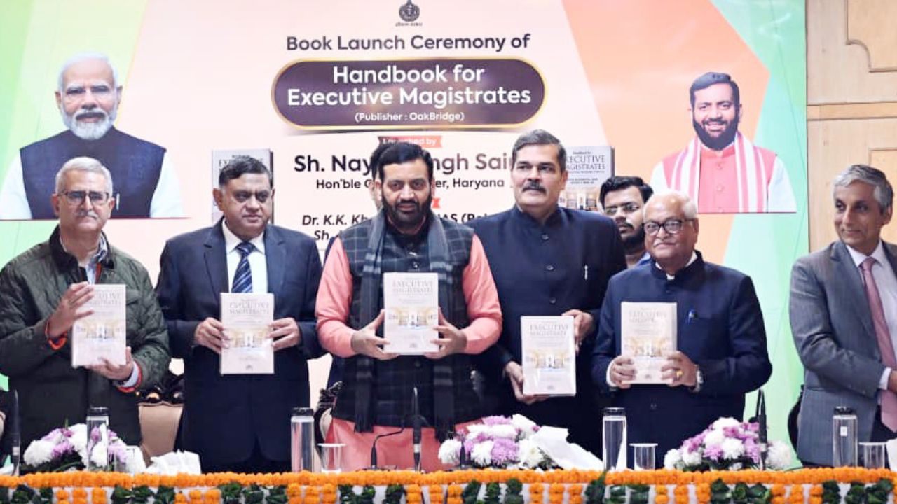 Chandigarh, December 2025 – Haryana Chief Minister, Sh. Nayab Singh Saini released the ‘Handbook for Executive Magistrates’ on Tuesday. The book has been authored by senior IAS officer (Retd.) Dr. K.K. Khandelwal and Sh. Apoorva Kumar Singh, Additional Chief Secretary to the Government of Haryana.