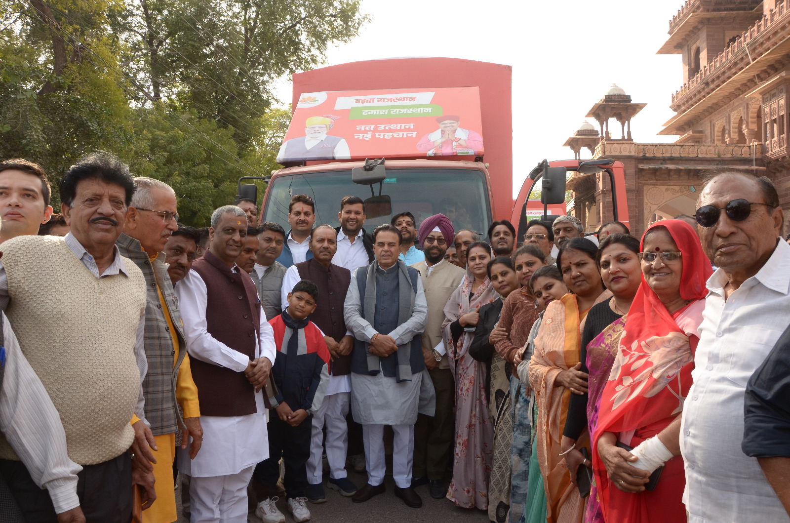 December 2025, Jaipur : On the occasion of the completion of two years of the current state government, a grand district-level program titled “Progressive Rajasthan – Our Rajasthan” was organized on Saturday at the Collectorate premises in Jodhpur. The event included the flagging off of Development Rath (LED Mobile Vans) and a Road Safety Awareness Campaign.