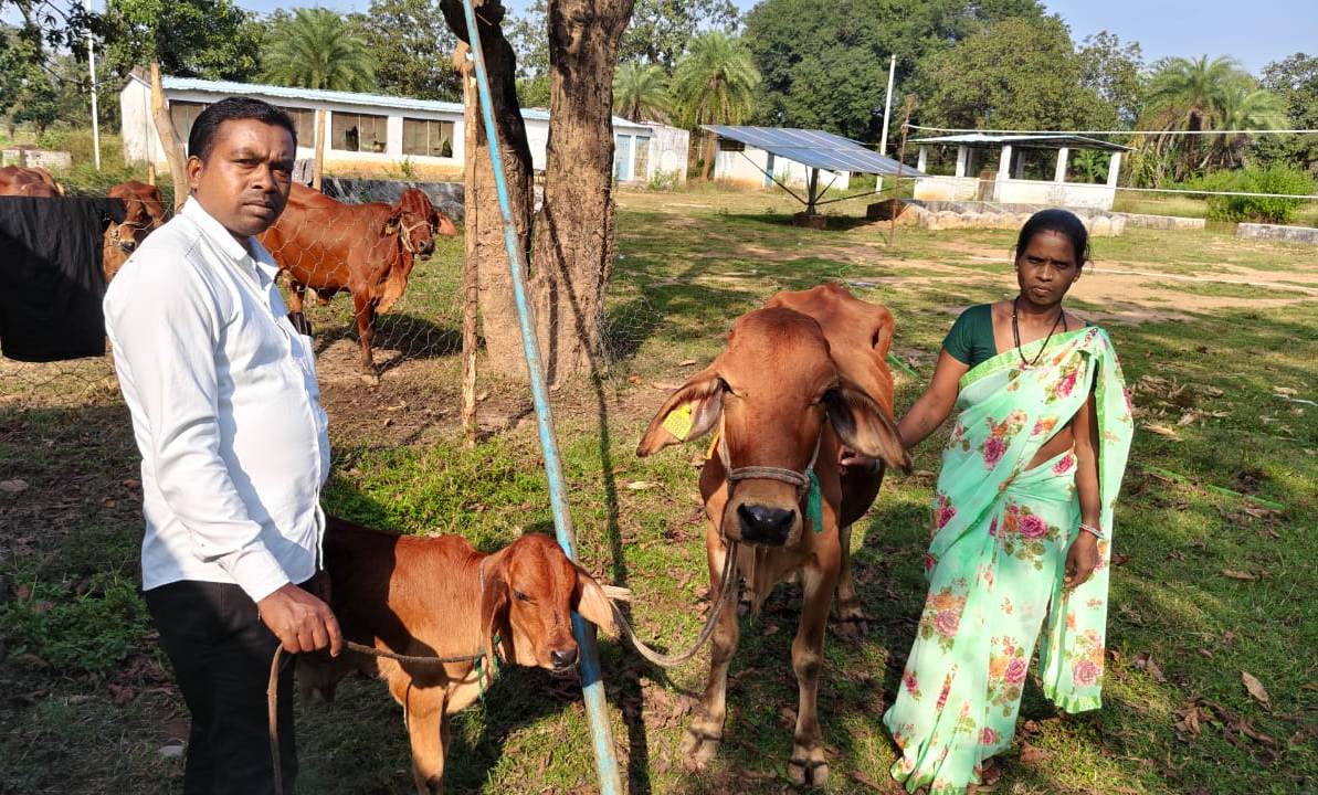 Under the target of providing loans and subsidies for milch animals to 125 beneficiaries in Kondagaon and Kanker districts of Bastar division, so far bank loans have been sanctioned for applications submitted by 47 women, out of which 36 milch animals have been distributed to 24 women. To provide good-breed milch cows to beneficiaries, NDDB Dairy Services is identifying Sahiwal breed cows (with a daily milk production capacity of 8–10 litres) from Rajasthan and Punjab regions and distributing them to Scheduled Tribe women.