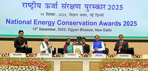 National Energy Conservation Day 2025 was celebrated today at Vigyan Bhawan, New Delhi, where the President of India, Smt. Droupadi Murmu, felicitated the winners of the National Energy Conservation Awards (NECA) 2025 and the National Painting Competition on Energy Conservation 2025.
