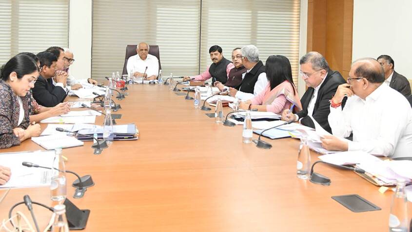 Chief Secretary Shri Manoj Kumar Das; Principal Advisor to the CM Dr Hasmukh Adhia; Advisor Shri S. S. Rathore; Chairman of the Sardar Sarovar Narmada Nigam Ltd Shri Mukesh Puri; Additional Chief Secretaries of Agriculture, Energy, and Narmada Water Resources; Principal Secretaries of Tribal Affairs and Labour and Employment; Additional Principal Secretary to the CM Smt. Avantika Singh; Secretary Dr Vikrant Pandey; Roads & Building Department Secretary Shri P.R Patelia; and Secretaries of other concerned departments remained present in the meeting.