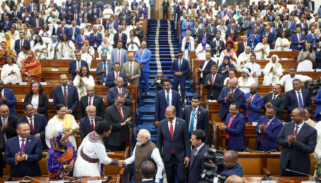 Addressing the Parliament, he said he was honoured to speak in what he called a “temple of democracy”, representing the aspirations and voices of the Ethiopian people. He carried with him greetings on behalf of the 1.4 billion people of India, expressing friendship, goodwill, and solidarity.