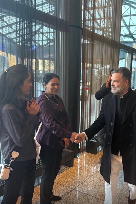In a post on X, the official handle of Indian Oversees Congress (IOC) wrote, “Dr. Sonia Heldestad, President of the IOC Women’s Wing, Sweden and Gurminder Kaur Randhawa, Convener of the UK-Europe Wing, warmly welcome Shri Rahul Gandhi Ji in Berlin, and hail his voice for democracy, constitutional values, and unity that continues to inspire across borders“.