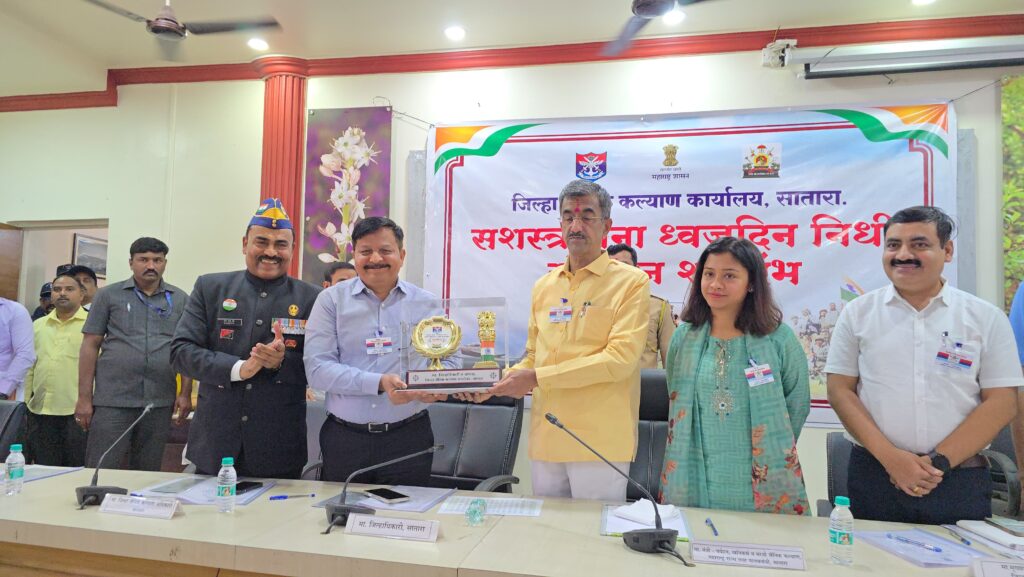 Satara is known as a land of brave warriors and contributes the highest number of recruits to the armed forces. Many soldiers from the district have sacrificed their lives or suffered disabilities while serving the nation. Looking after their families is the shared responsibility of the administration and society. Appealing to the public for generous contributions, District Collector Patil expressed confidence that this year’s 107 percent achievement could be raised to 207 percent next year.