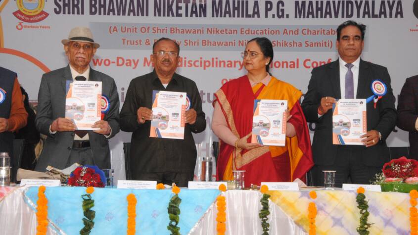Speaker Shri Devnani inaugurated the two-day multidisciplinary conference on Friday by lighting the ceremonial lamp at Shri Bhawani Niketan Girls’ PG College. He also released a souvenir published on innovation, technology, women empowerment, and sustainable future based on human values. Vice Chancellor of the University of Rajasthan Prof. Alpana Kateja and Vice Chancellor of Pandit Deendayal Upadhyaya Shekhawati University, Sikar, Prof. Anil Kumar Rai were the special guests. The keynote speaker at the conference was Dr. Laxman Singh Rathore, former Director General, Meteorological Department of India.