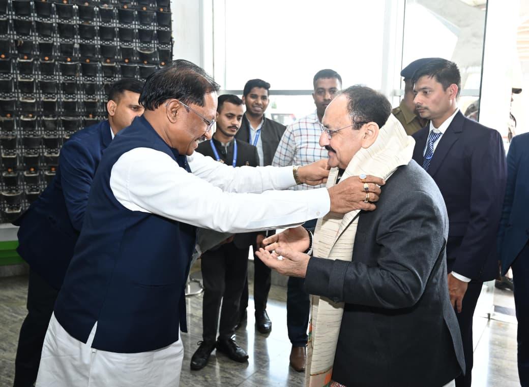 Home State Chief Minister Vishnudev Sai Extends Warm Welcome to Union Health and Family Welfare Minister J.P. Nadda