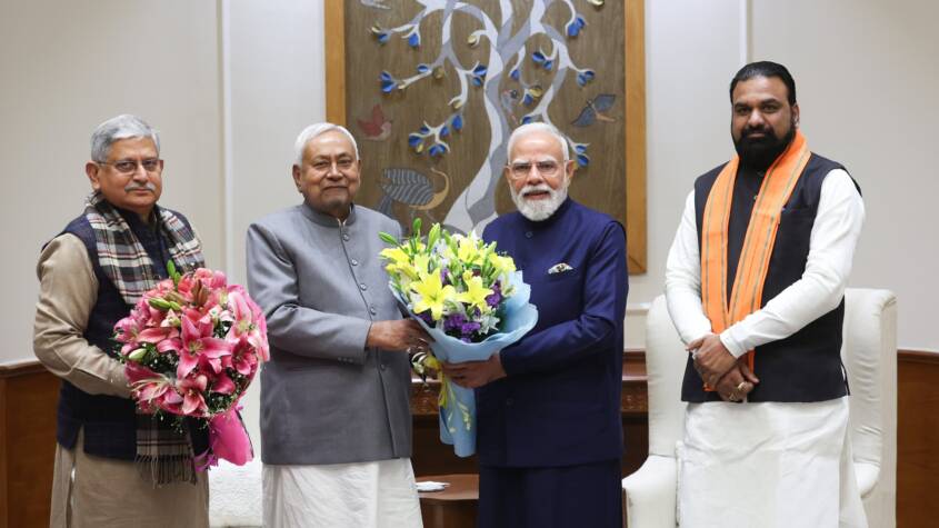 The Chief Minister of Bihar, Shri Nitish Kumar, Deputy Chief Minister of Bihar, Shri Samrat Choudhary and Union Minister, Shri Rajiv Ranjan Singh met the Prime Minister, Shri Narendra Modi in New Delhi today.