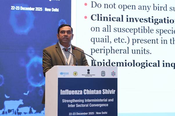 The National Centre for Disease Control (NCDC), on behalf of the Ministry of Health and Family Welfare (MoHFW), in collaboration with the World Health Organization (WHO) India organised a two-day Influenza Chintan Shivir from 22–23 December 2025 in New Delhi on the theme “Strengthening Inter-ministerial and Inter-sectoral Convergence for Influenza Preparedness and Response.” Stakeholders from the Disaster Management (DM) Cell of MoHFW, Indian Council of Medical Research (ICMR), Department of Animal Husbandry and Dairying (DAHD), and the National Institute of High Security Animal Diseases (NIHSAD) participated in this Chintan Shivir. The Shivir provided a structured platform for deliberations to strengthen preparedness and response mechanisms ahead of the upcoming influenza season.