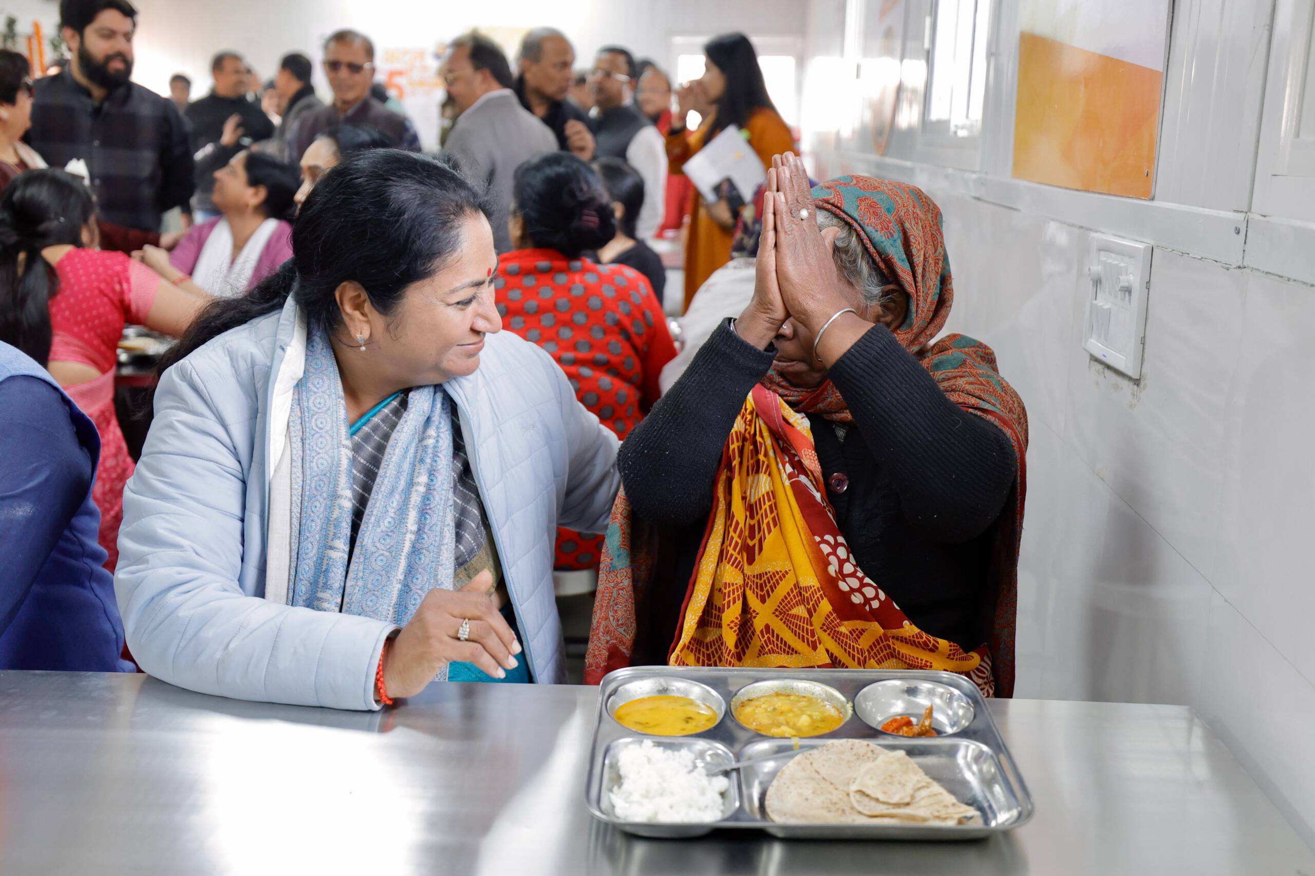 Chief Minister serves food to elderly women at the Atal Canteen