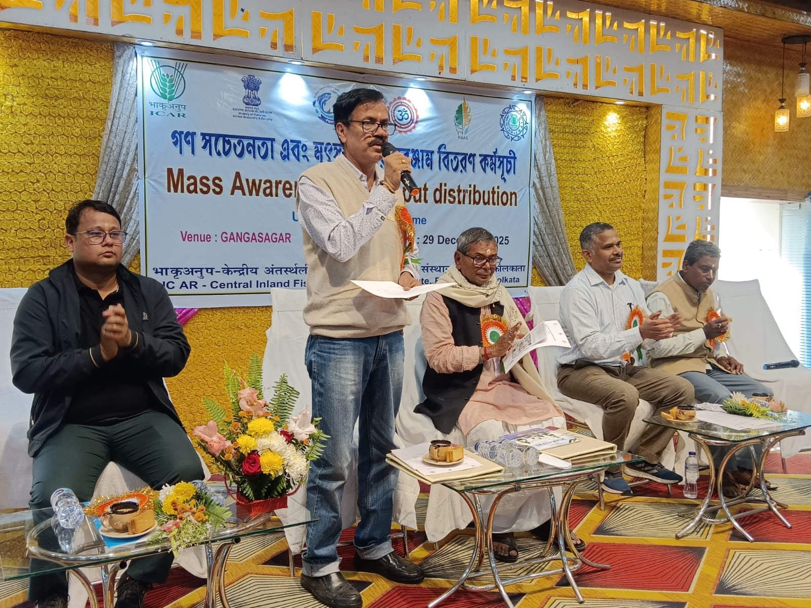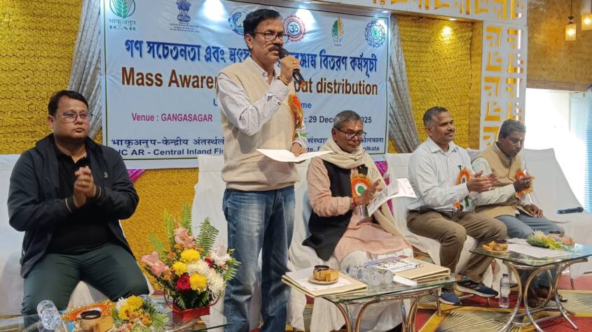 As part of its ongoing commitment to the welfare of Scheduled Caste (SC) fish farmers, ICAR-CIFRI organised a fisheries input distribution and mass awareness programme on December 29, 2025, at Rudranagar, Sagar Island, under the Scheduled Caste Sub-Plan (SCSP).
