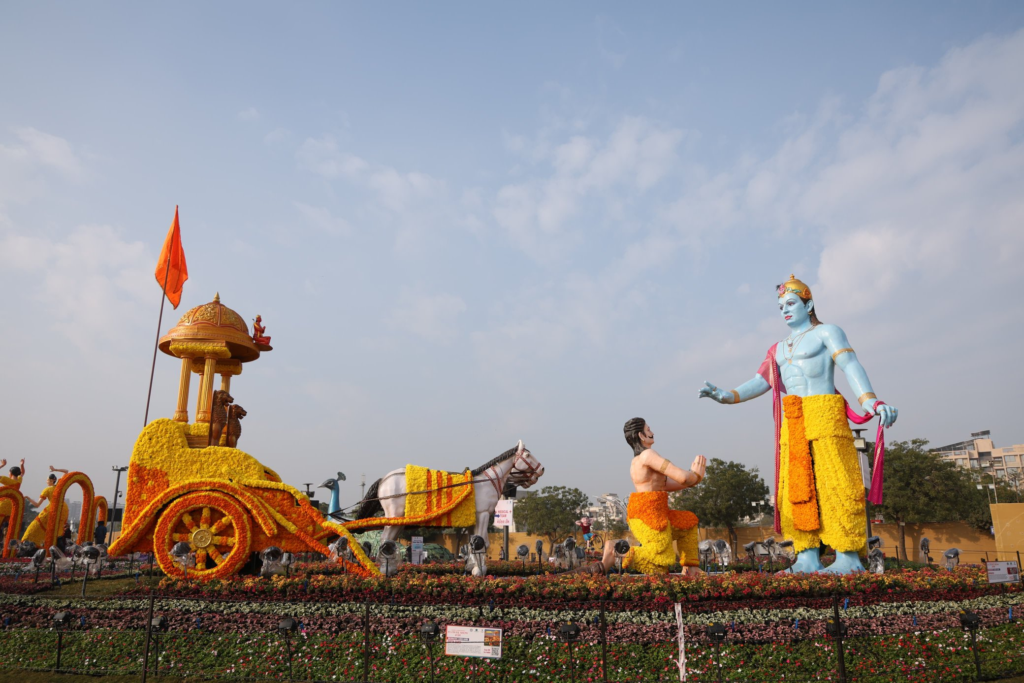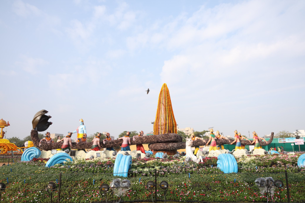 The ‘Shashvat Bharat’ zone showcasing India’s mythological heritage will also be a major attraction of the flower show. In this spiritually rich zone, mythological episodes such as Samudra Manthan, Gita Saar, Govardhan Leela, descent of Ganga and Ram Setu have been artistically recreated through floral sculptures, connecting visitors with India’s ancient cultural narratives. Along with this, a zone dedicated to Indian classical and folk dance traditions will present the grace of dance forms such as Kuchipudi, Bhangra, Garba and Kathakali. At the centre of this zone, the idol of Lord Nataraja will symbolise India’s artistic richness, continuity of tradition and the universal language of rhythm.