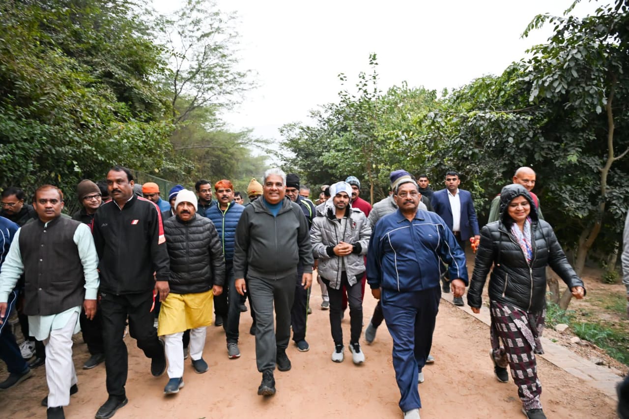 Jaipur, January 2026 : During his visit to Alwar, Union Minister for Environment, Forest and Climate Change Shri Bhupender Yadav undertook a morning walk at the Namo Van Biodiversity Park, where he interacted with people who had come for their daily walk and discussed the development of the district.