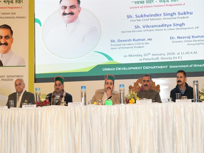 Chief Minister Thakur Sukhvinder Singh Sukhu today inaugurated the second phase of the ‘Citizen Connect Program’ at Peterhoff, Shimla, under the state’s flagship initiative ‘Clean City, Prosperous City’. Highlighting Himachal Pradesh’s journey towards self-reliance, he said the state is witnessing continuous positive transformation, with the government focusing on inclusive and sustainable urban development to meet the challenges of growing population and urbanization.