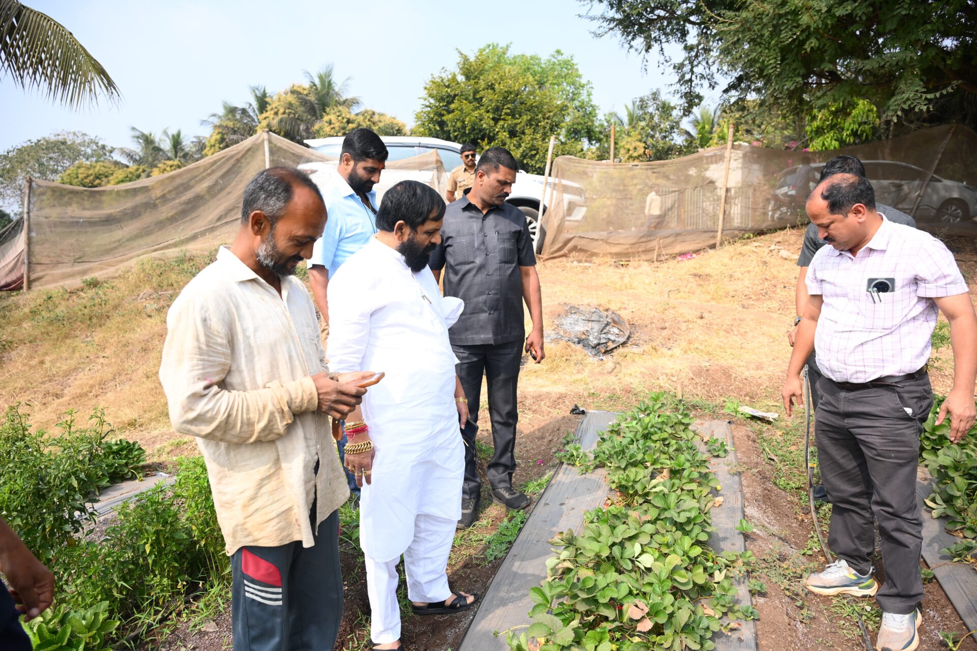 Horticulture Minister Bharat Gogawale Visits Strawberry Farm in Ozharde Village of Wai Taluka