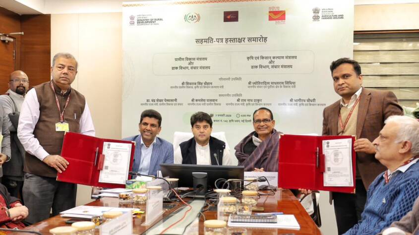The MoU was signed in the presence of the Union Minister of Communications and Development of North Eastern Region, Shri Jyotiraditya M. Scindia, and the Union Minister of Rural Development and Agriculture & Farmers’ Welfare, Shri Shivraj Singh Chouhan.
