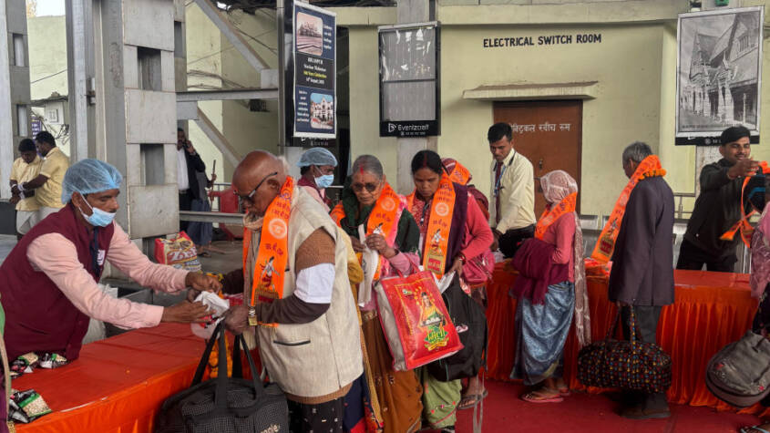 Raipur, January 2026 : Under the Chhattisgarh government’s Ram Lalla Darshan Yojana, a special train carrying 850 pilgrims from the Bilaspur division departed today from Bilaspur Railway Station for Ayodhya Dham. As part of this sacred यात्रा, the pilgrims will also have the special opportunity to offer prayers at Kashi Vishwanath Temple in Varanasi. The railway station witnessed an atmosphere filled with enthusiasm and devotion as the pilgrims embarked on the holy journey.