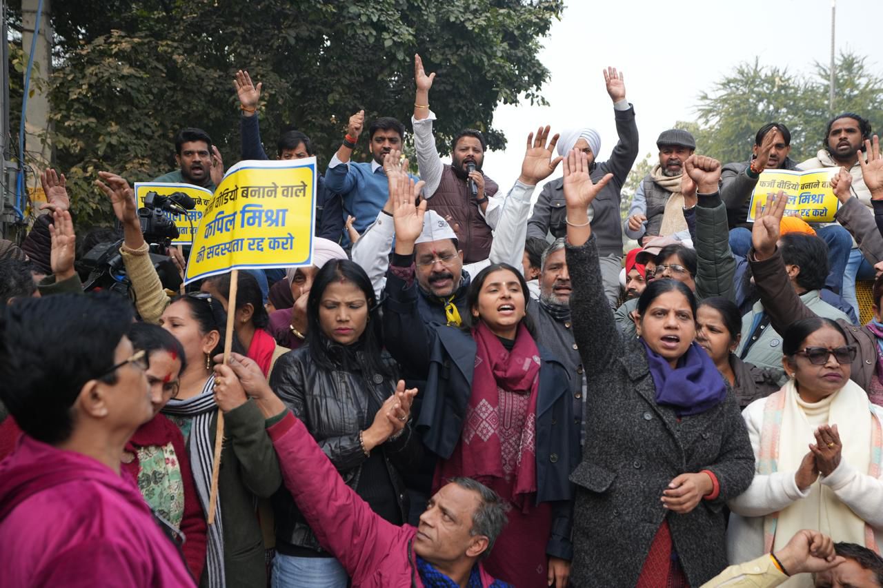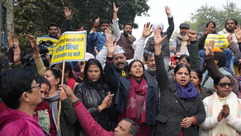 AAP holds massive protest demanding dismissal of Kapil Mishra for insulting Guru Sahibs
