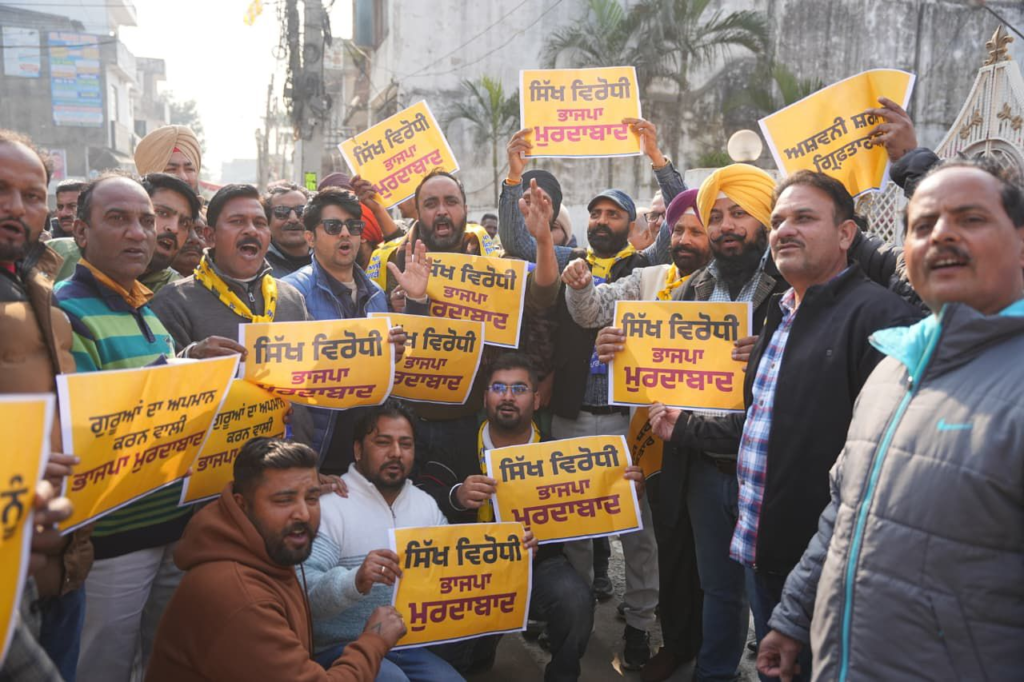 The first protest in Punjab was held outside the residence of BJP working president Ashwani Sharma, where thousands of AAP workers and leaders gathered. The demonstration was led by constituency in-charge Amit Singh Manto. Protesters accused the BJP of repeatedly playing with Sikh sentiments and pursuing divisive politics.