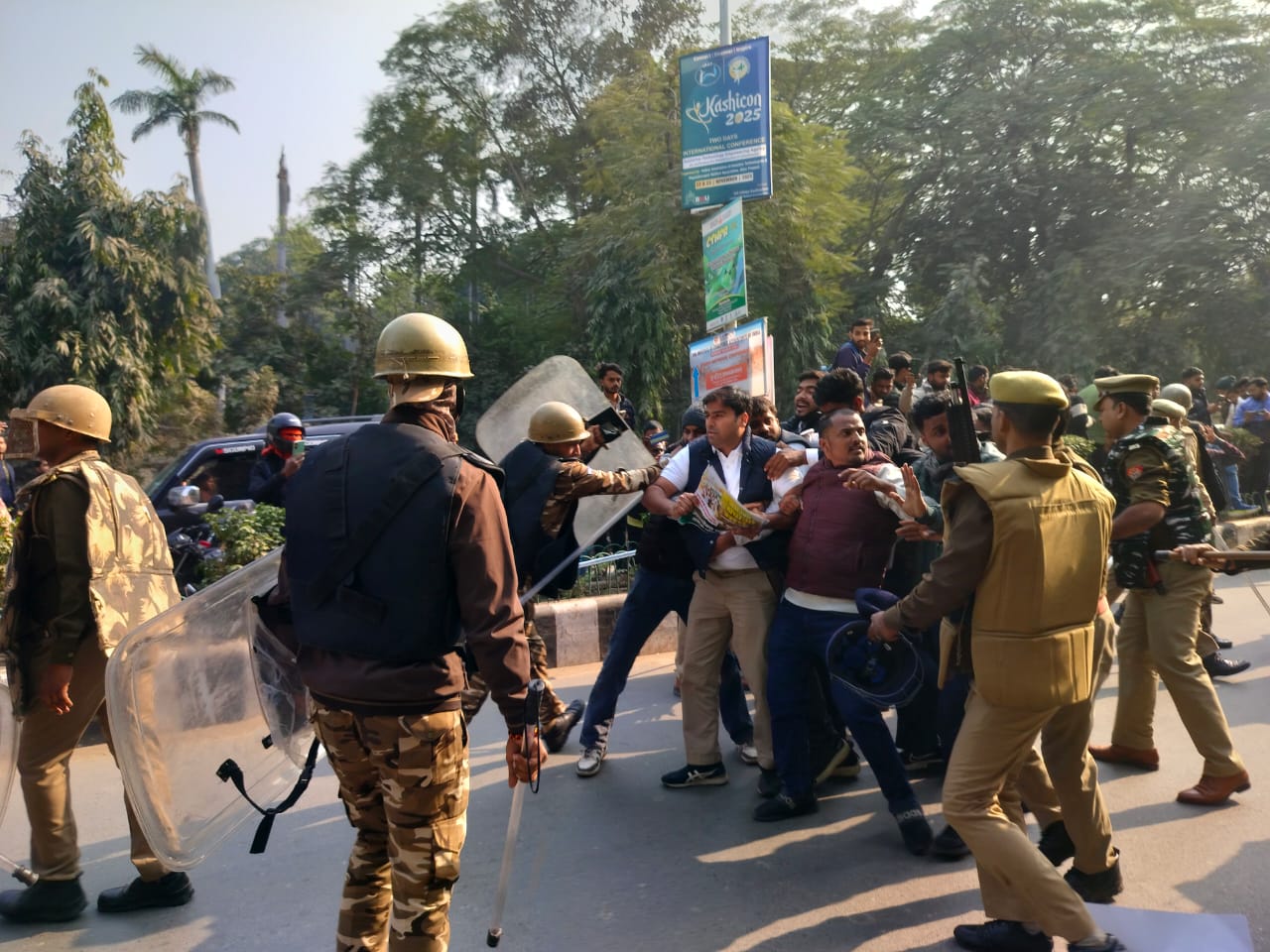 Her reaction came after video footage of the incident went viral on social media, showing NSUI members staging a peaceful protest near the statues of Mahatma Gandhi and Dr Bhimrao Ambedkar in Varanasi. The demonstrators were opposing the Union government’s move to replace MGNREGA with a new framework titled the Viksit Bharat–Guarantee for Rozgar and Ajeevika Mission (Gramin) Act, commonly referred to as the VB-G RAM G scheme.