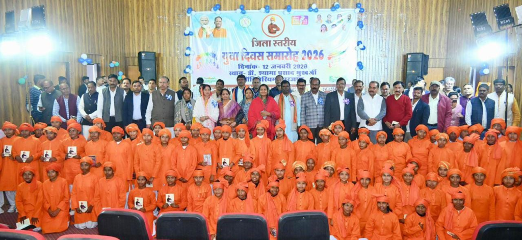 Raipur, January 2026 : On the occasion of National Youth Day, Minister for Women and Child Development, Mrs. Laxmi Rajwade, emphasized that only by imbibing the thoughts and teachings of Swami Vivekananda can India become strong, harmonious, and developed. She called upon the youth to embrace the “Five Transformations” in their lives: social harmony, family enlightenment, environmental protection, indigenous conduct, and adherence to civic duties.
