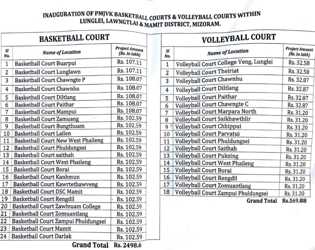 These courts are expected to promote sports culture, youth development, and community engagement in minority-populated districts of Mizoram.