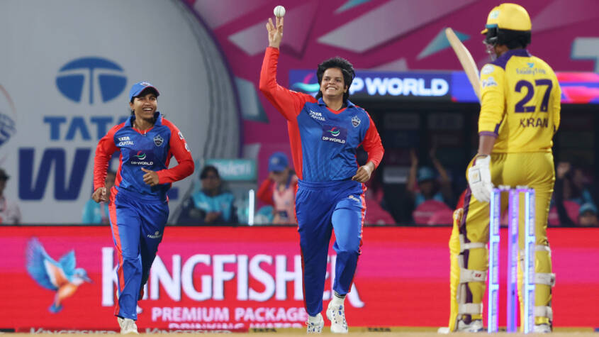 Delhi Capitals then executed a remarkable turnaround. Shafali Verma delivered a tight off-spin spell, conceding just 16 runs while taking two key wickets. Nandini Sharma struck at a crucial moment, dismissing Lanning for 54, ending the dangerous third-wicket partnership and triggering a collapse.