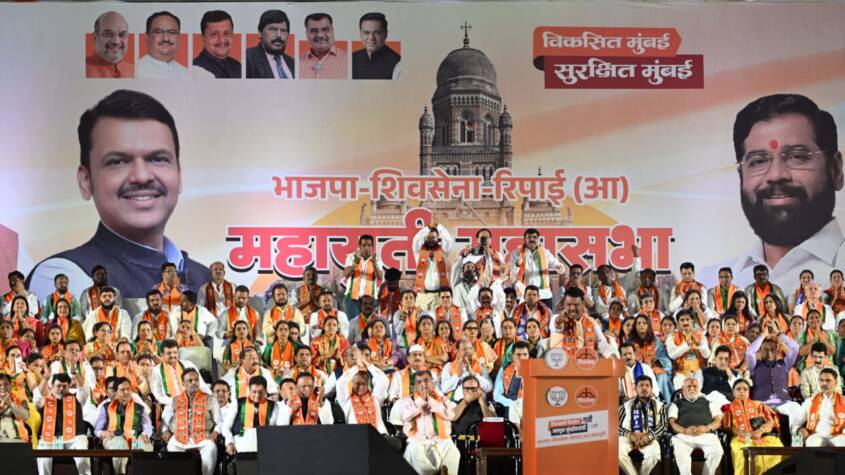 Mumbai, Jan 2026 : The Bharatiya Janata Party (BJP)–Shiv Sena alliance appears poised for a decisive victory in the Brihanmumbai Municipal Corporation (BMC) elections, according to multiple exit polls cited by media reports. The surveys suggest that the ruling Mahayuti alliance, led by Chief Minister Devendra Fadnavis and Deputy Chief Minister Eknath Shinde, has surged far ahead of its rivals, facing limited resistance from the united front of the Thackeray brothers and leaving the Congress-led alliance trailing well behind.