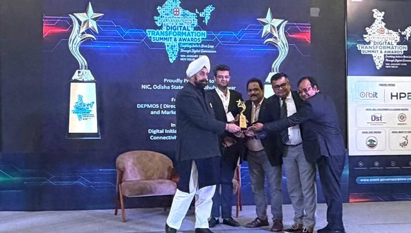 Bhubaneswar, Jan 2026 : The National Informatics Centre (NIC) of Odisha has been honoured with the “Digital Initiative for Ensuring Rural Connectivity and Digital Services Award” for the Directorate of Export Promotion and Marketing Online Services (DEPMOS) project. This recognition is a testament to the innovation, dedication, and transformation in the field of Digital Governance.