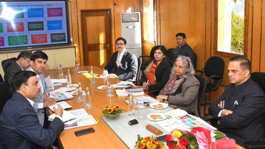 The Chief Secretary was chairing a meeting on the theme “Textiles in Rajasthan” held at the Secretariat on Friday. He said that Bhilwara is the textile hub of Rajasthan. Under the Rajasthan One District One Product policy, products from districts such as Bhilwara, Balotra, Kota, Pali, and Barmer are being promoted.