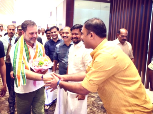 Kochi, Kerala; January 2026: Lok Sabha Leader Of Opposition Rahul Gandhi has arrived Kochi a few while ago today – 19th January 2026 to confer the Priyadarshini Literary Award by Kerala Pradesh Congress Committee upon Dr M. Leelavathy in Kalamassery.