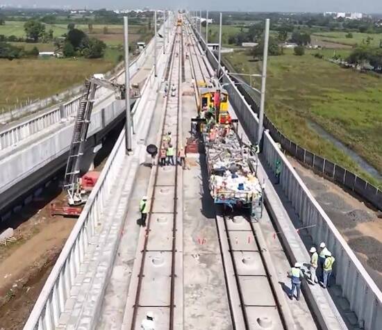 The OHE masts are being installed on elevated viaducts at significant heights above ground level. In total, more than 20,000 masts, ranging from 9.5 to 14.5 metres, will be installed along the corridor. The masts will support the complete 2×25 kV overhead traction power system, including overhead wires, earthing arrangements, fittings, and other accessories required for bullet train operations.