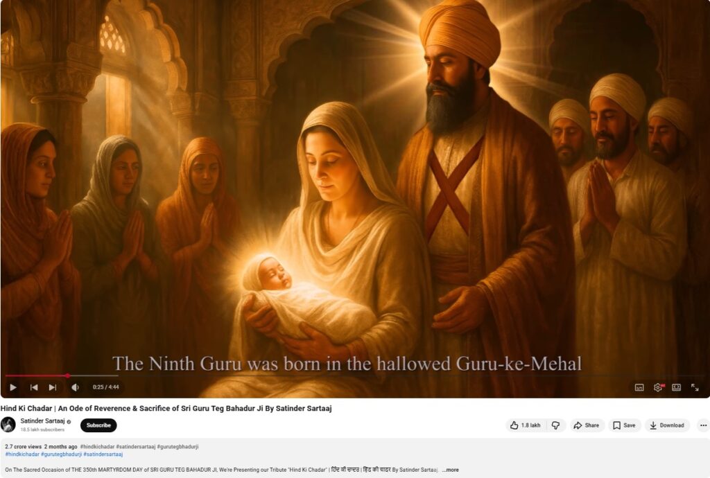 On the sacred land of Nanded, programs are being organized on the occasion of the 350th glorious martyrdom anniversary of Sri Guru Tegh Bahadur Sahib Ji. With the cooperation of the Government of Maharashtra and the 350th Martyrdom Centenary Committee of Sri Guru Tegh Bahadur Ji, the “Hind Ki Chadar” documentary (information film) produced by Nirvair, along with Sartaaj’s song, has now gone beyond being merely viral content—it has become a “digital movement of values.”
