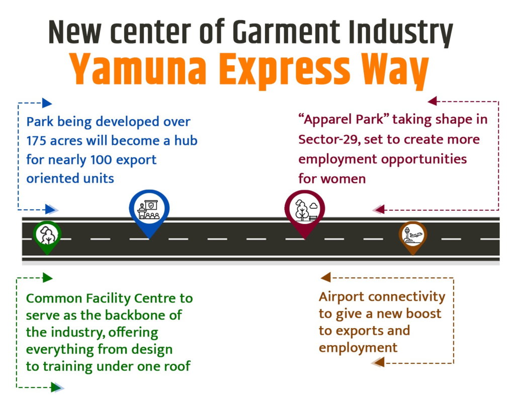 The location of the Apparel Park is strategically significant. With direct connectivity to the Yamuna Expressway and proximity to the upcoming Noida International Airport, the project is well-positioned to significantly boost garment exports. Its proximity to the Delhi-NCR region will reduce logistics costs and ensure faster, time-bound deliveries, a crucial advantage for exporters.