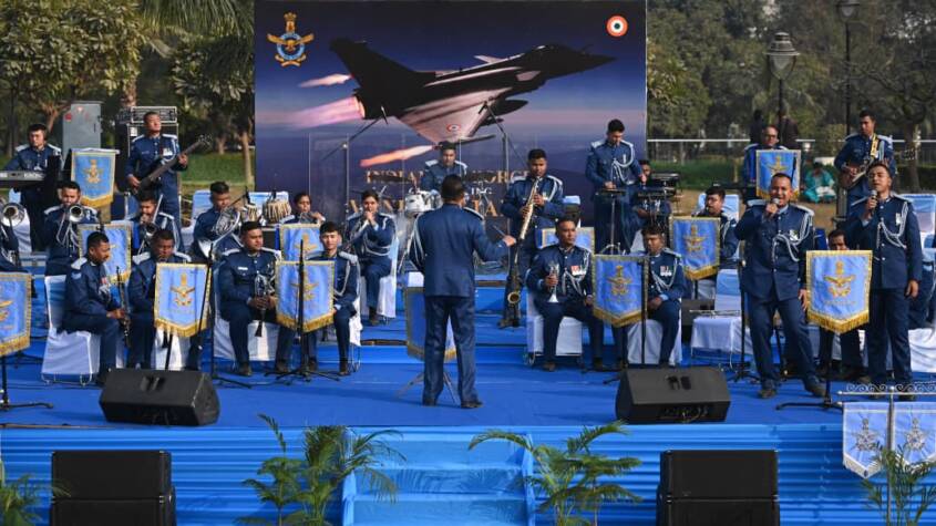 As part of these celebrations the Indian Air Force (IAF) Band, comprising 31 musicians, performed at the amphitheatre in Rajiv Chowk, New Delhi on 21 Jan 26. The 45 minute performance included brass, reed, string and electronic instruments fused into eleven captivating tunes. Renditions of ‘Vande Mataram’ and the song ‘Sindoor’, composed to commemorate the actions of the Indian Armed Forces during Op Sindoor, were the highlights of the performance.