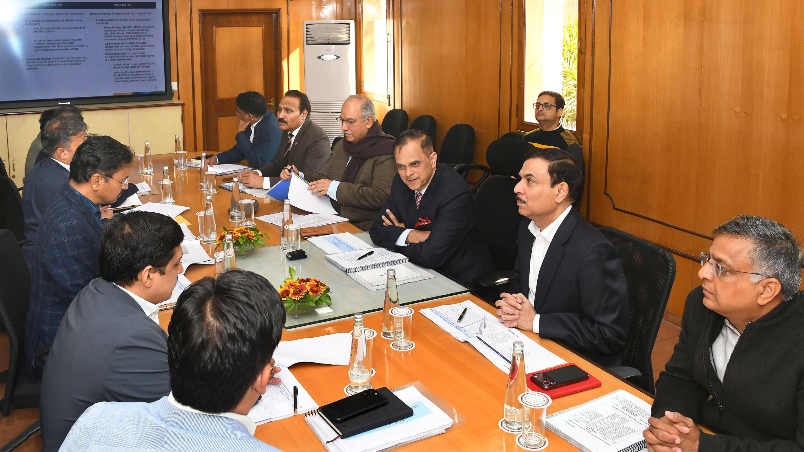 The meeting was attended by senior officials including Additional Chief Secretaries from Water Resources, Forest & Environment, Public Works, and Energy; Principal Secretaries from Finance, Mines & Petroleum, and Urban Development; Industries & Commerce Commissioner Shri Suresh Kumar Ola; and Additional Commissioner of the Investment Promotion Bureau Shri Jugal Kishore Meena.