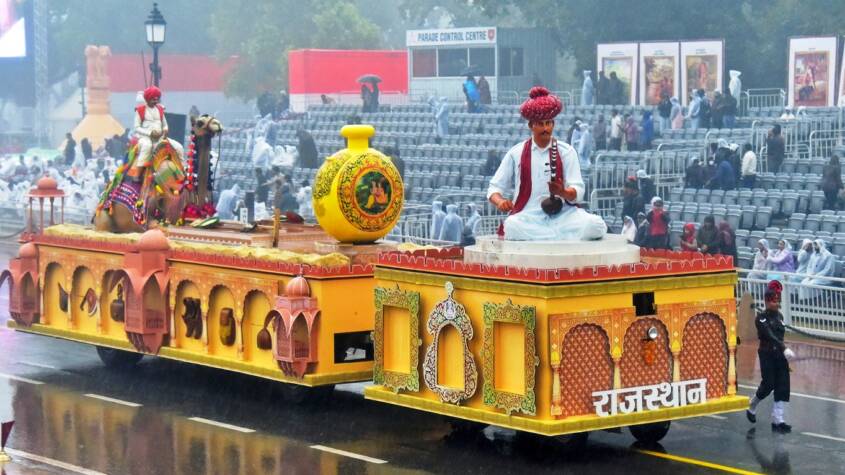 Around the tableau, performers of non-folk dances further highlighted Rajasthan’s cultural identity. Overall, the tableau represents a lively confluence of traditional art, folk culture, and royal heritage.