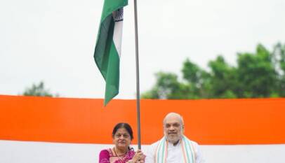 UHM Amit Shah hoists the tricolour at his residence in New Delhi today under ‘Har Ghar Tiranga’ campaign